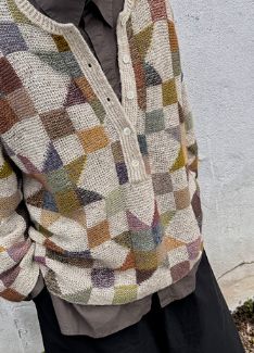 Блузка вяжется снизу вверх платочной вязкой с квадратами разных цветов. Передняя и задняя части вяжутся отдельно и сшиваются в конце. С каждой стороны блузки есть небольшой разрез. Рукава вяжутся взад и вперёд и пришиваются к основной части. На передней части вяжется планка на пуговицах, а в конце — небольшой закруглённый вырез.